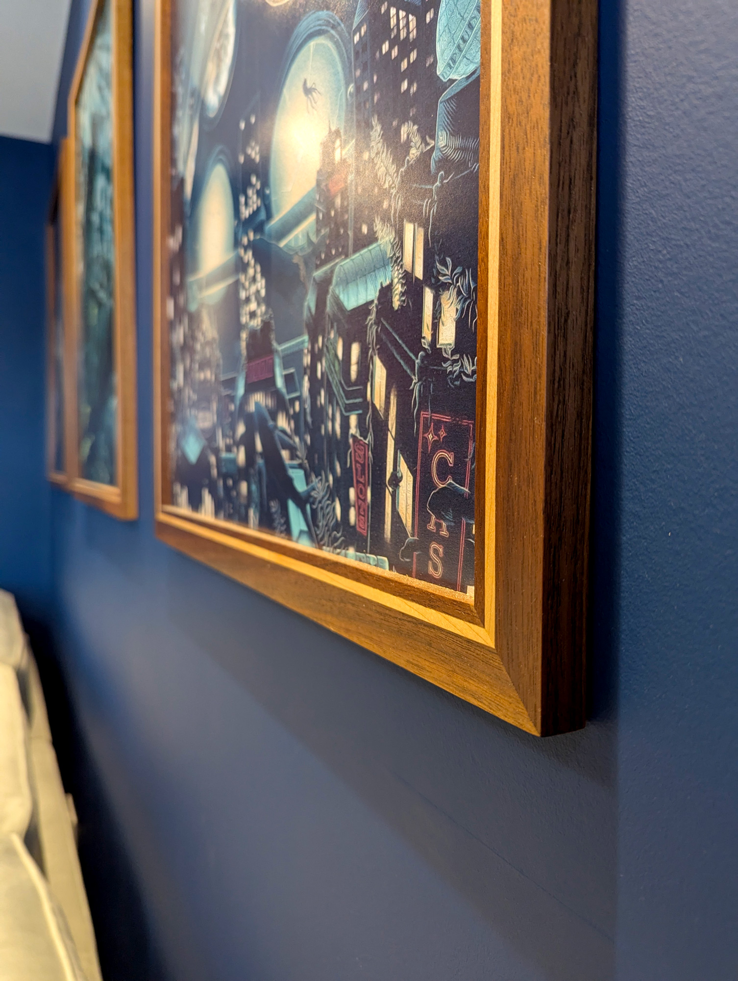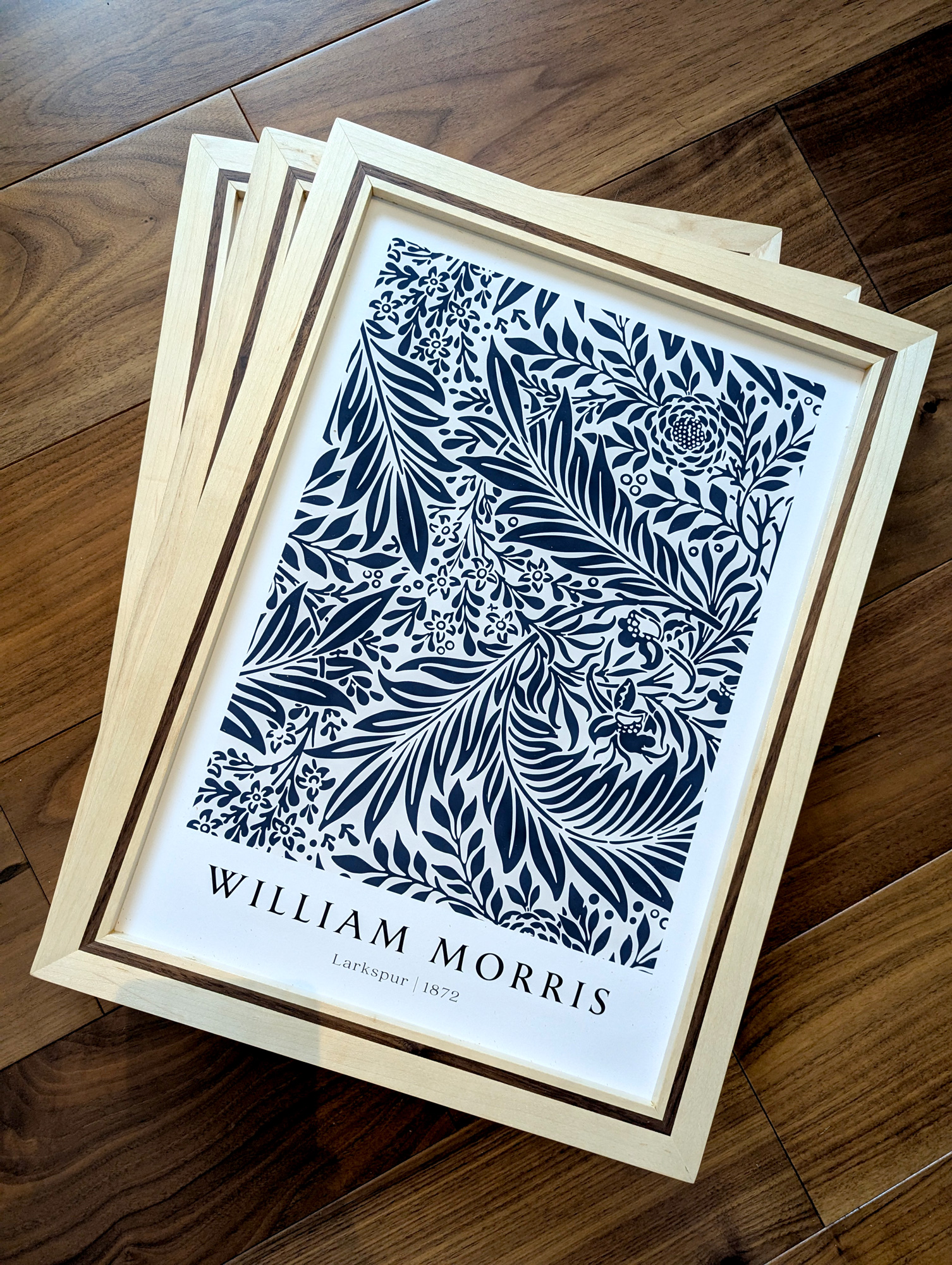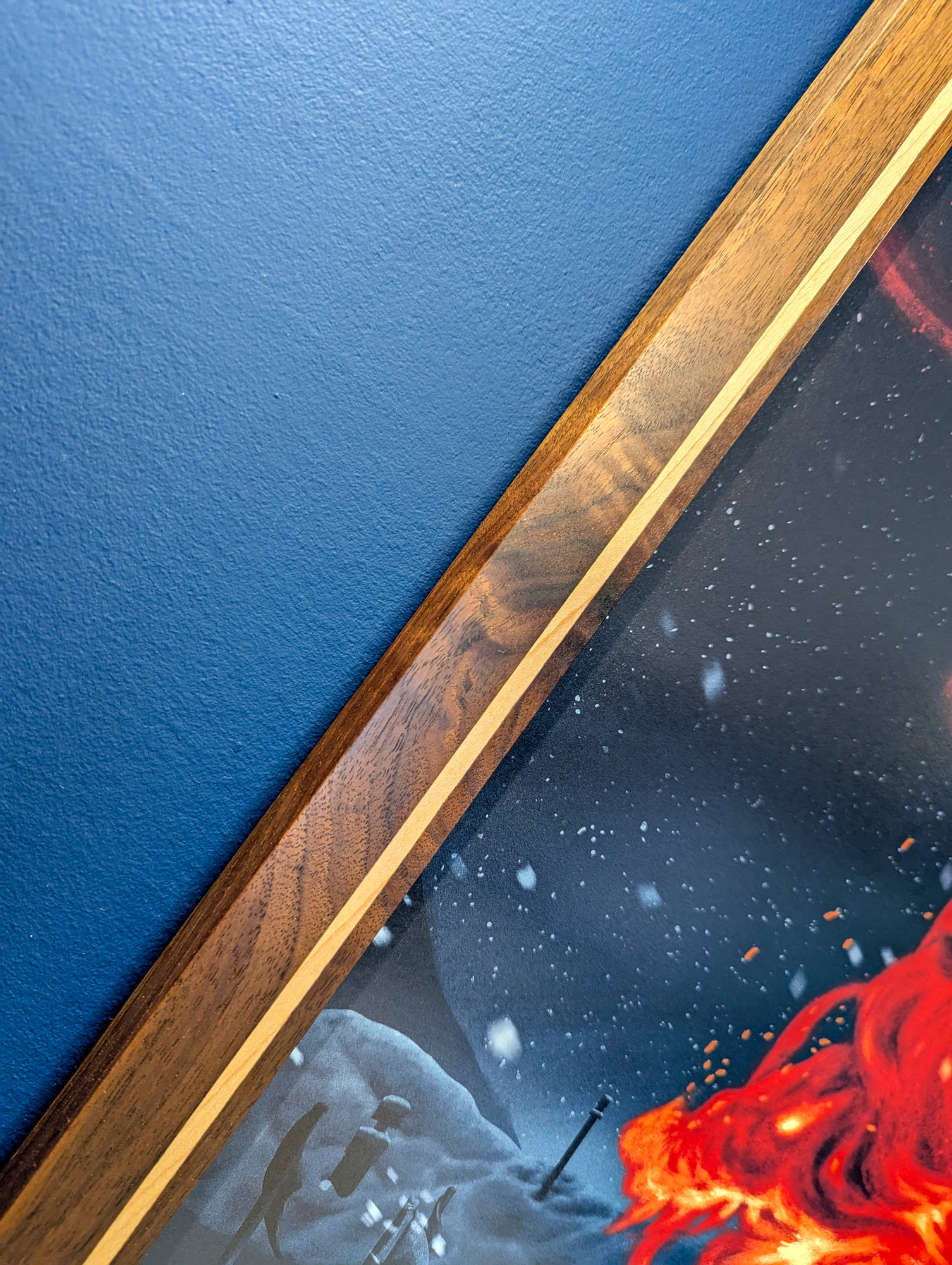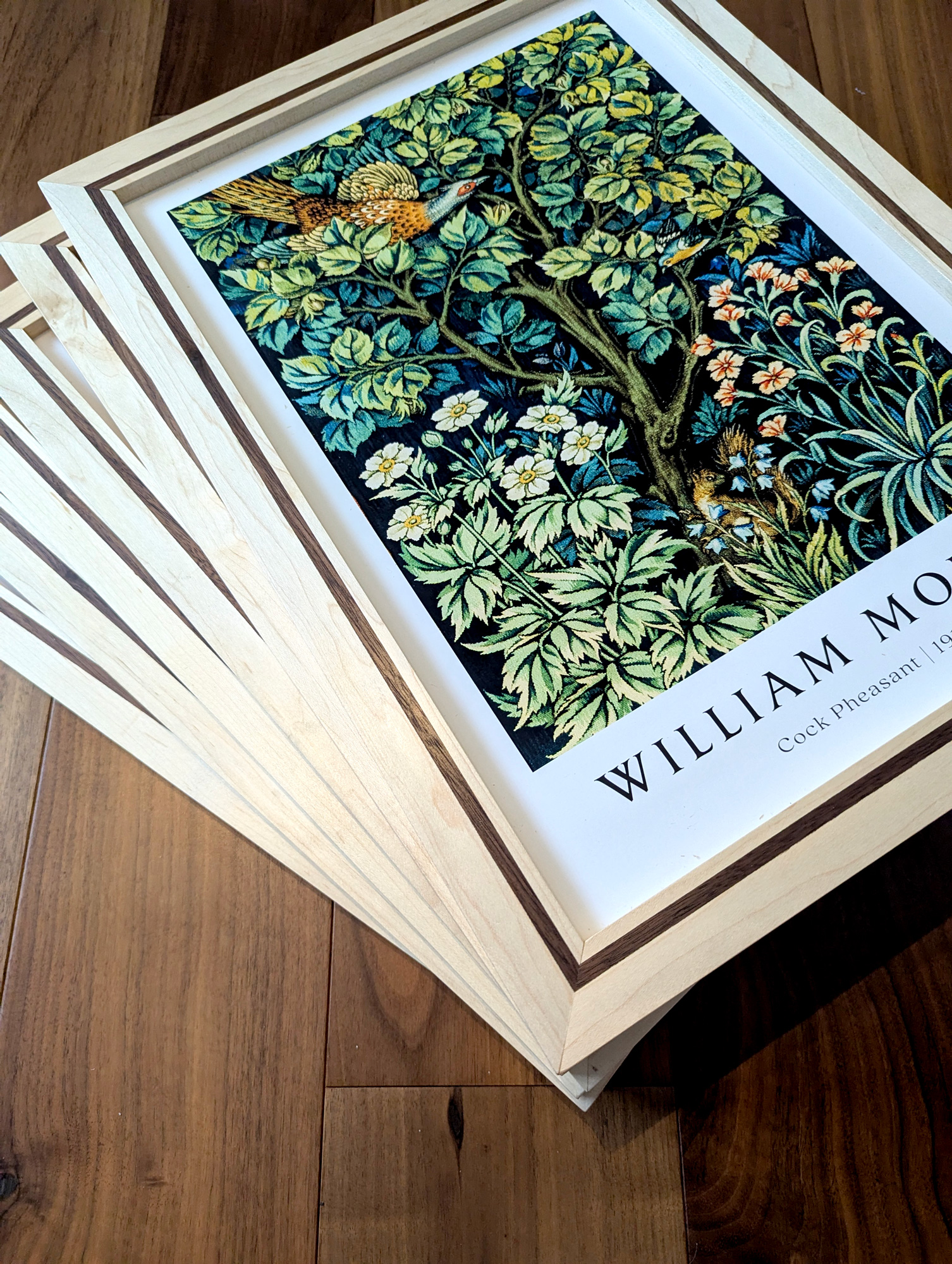 Adding some wall art to the living room – walnut frames with maple inlay.