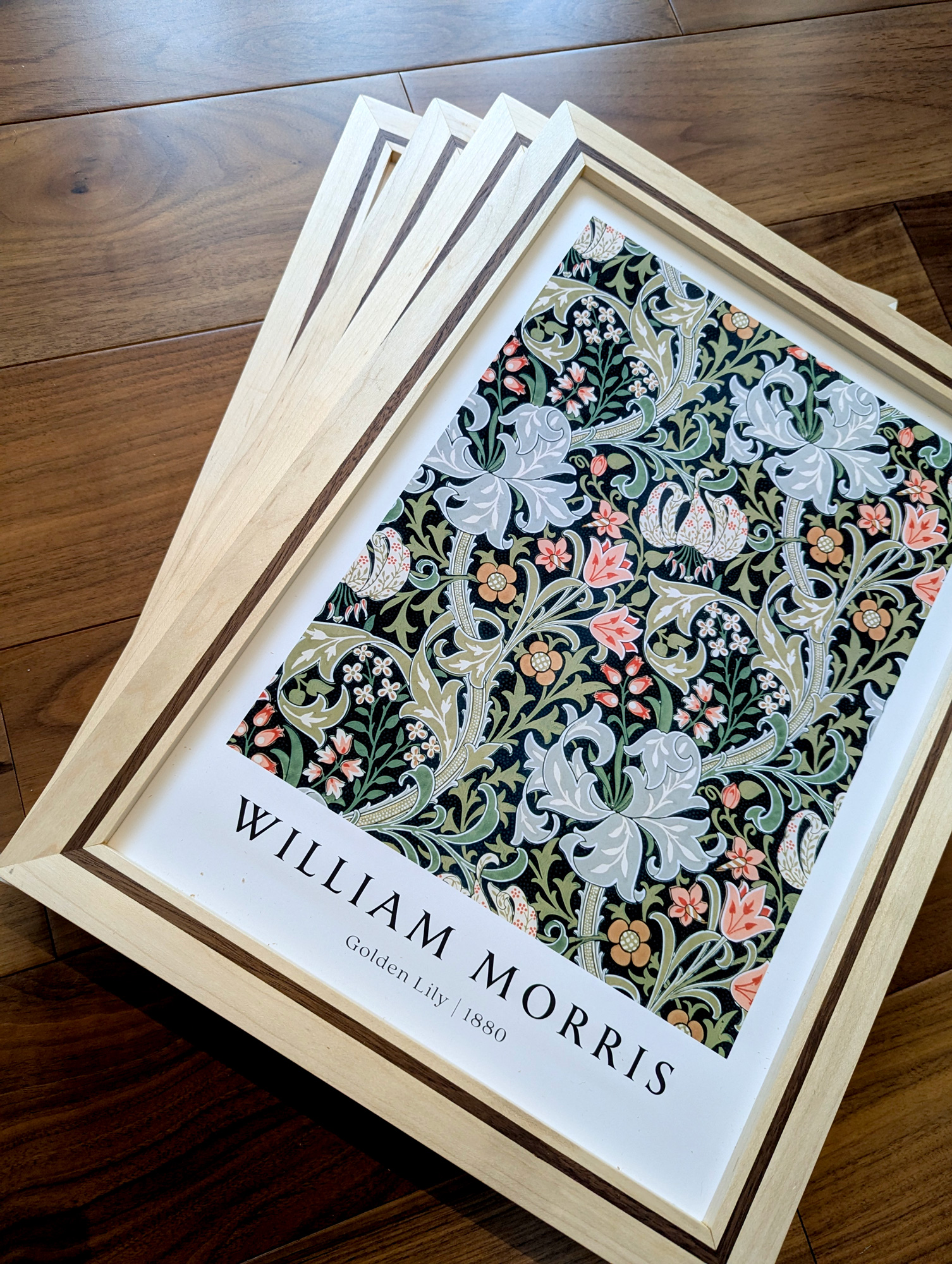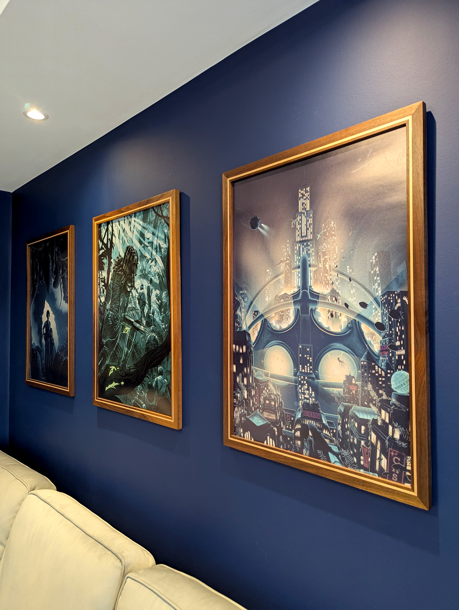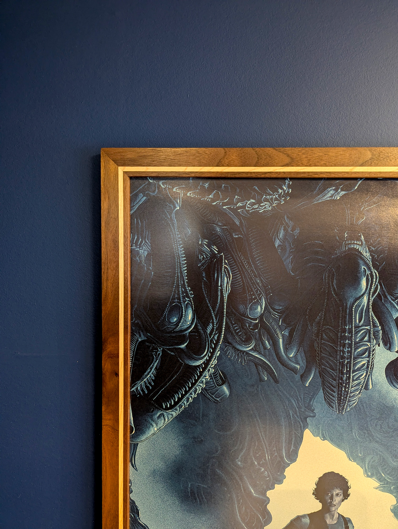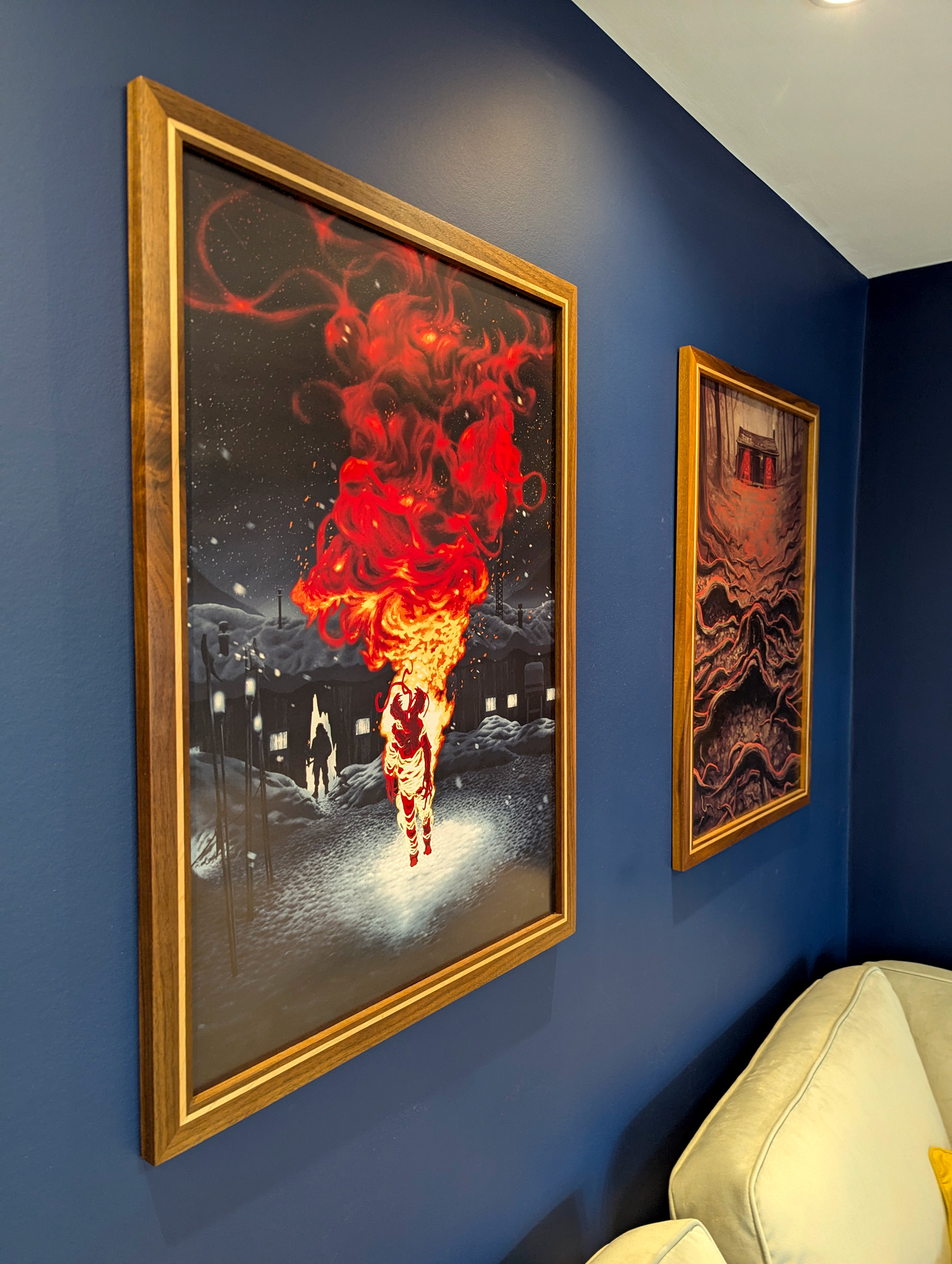 Adding some wall art to the living room – walnut frames with maple inlay.